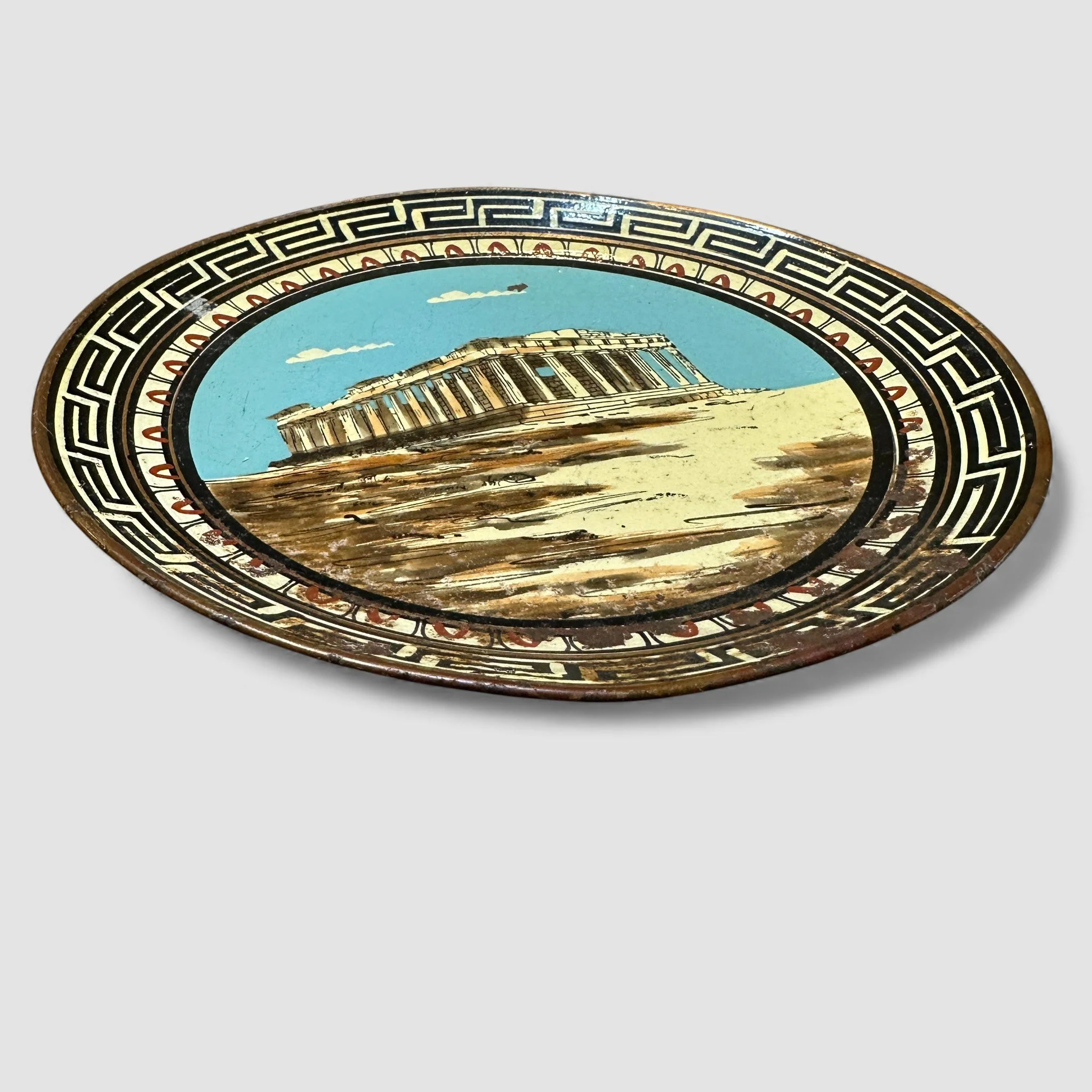 1970s HANDMADE GREEK ENAMEL DECORATIVE PLATE